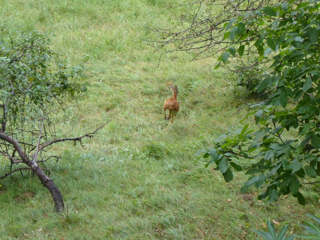 Stavo camminando quando improvvisamente ho visto, sotto la strada, a pochi metri da me, una giovane cerva: era accovacciata sull’erba e mi stava osservando, attenta. Non appena mi ha visto sollevare la mano con la fotocamera si è immediatamente rialzata, mettendosi in fuga.