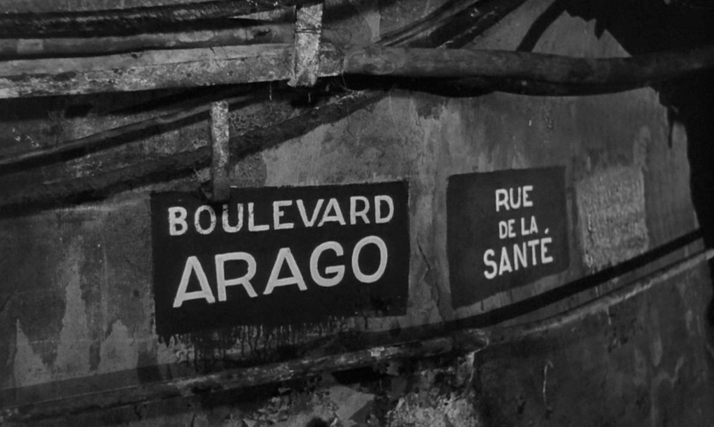 La prigione della Santé, un edificio ottocentesco, si trova nel XIII arrondissement parigino, sul boulevard Arago, che prende il nome da un grande astronomo e fisico vissuto nell’800 (morì qualche anno prima della costruzione del carcere), che abitava nel vicino Osservatorio Reale, dove perseguì i suoi studi sulla velocità della luce nell’aria, nell’acqua e nel vetro. A partire dai primi anni del ’900 all’angolo con rue de la Santé, per diversi decenni, si allestivano i palchi delle esecuzioni capitali, tramite ghigliottina. Questo luogo compare prima indirettamente, nel sottosuolo (e vediamo le targhe delle due vie) quando Manu e Gaspard, dopo aver abbattuto l’ultimo diaframma aprendo il fatidico buco, si avviano verso il tombino lì vicino, uscendo dal quale avrebbero potuto fuggire con i compagni la notte successiva: proprio lì, dove si eseguivano le condanne, essi spuntano dopo aver sollevato la piastra per guardare fuori, verso il mondo libero. Anche se la prima cosa che vedono (prima di un taxi) è proprio la prigione lì nei pressi, da dove non riusciranno, infine, a fuggire.