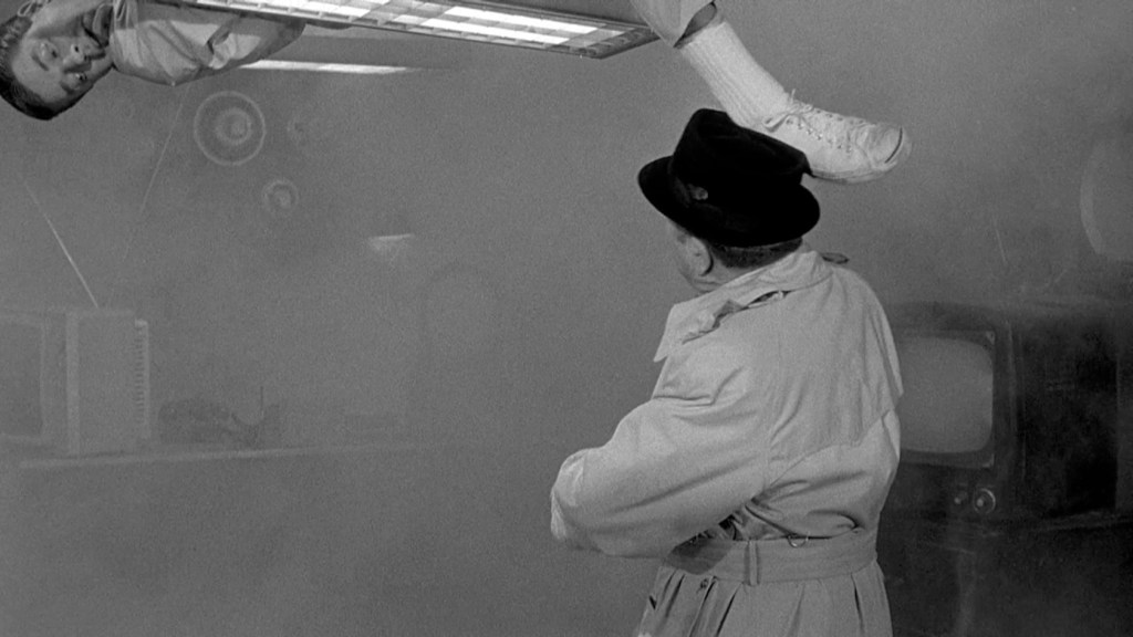3. Un altro evidente legame con il cinema d’animazione creato da Tashlin per molti anni, con le tante Merrie Melodies e Looney Tunes, è la presenza del coniglio bianco, utilizzato generosamente lungo tutto il film per creare situazioni tipiche di quel cinema. In molte di esse Harry sembra uno di quei personaggi, improvvisamente diventato ‘vero’.