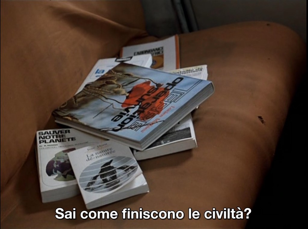 Ce qui m’a poussé à faire ce film, c’est le gâchis qu’on a fait de tout. C’est cette civilisation de masse où bientôt l’individu n’existera plus. Cette agitation folle. Cette immense entreprise de démolition où nous périrons par où nous avons cru vivre. C’est aussi la stupéfiante indifférence des gens, sauf de certains jeunes actuels, plus lucides.