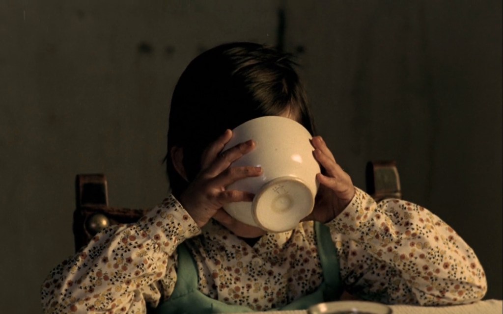 Nei film di Erice proprio quando sembra che non succeda niente in realtà stanno accadendo le cose più importanti. Anche se non le vedremo mai e non sapremo mai niente di preciso su di esse. Potremo soltanto provare a immaginarle, ovvero a intuirle, senza però avere mai una conferma delle nostre intuizioni, o congetture. Niente viene esplicitato, o rivelato, e quando qualcuno parla ciò che dice serve piuttosto a sviare che a far luce su quanto accade dietro quegli occhi, aperti o chiusi. Così Isabel mente alla sorellina Ana sul mostro di Frankenstein, e Agustìn, il padre di Estrella, ostenta durante il pranzo insieme a lei al ristorante del Grand Hotel, un’allegria fallace (?) proprio poche ore prima di togliersi la vita. La stessa Estrella elude l’ultima muta richiesta di soccorso del padre, frapponendo fra i due parole che non sono neppure insincere, però inette a stabilire un contatto fra i due, un ponte sul quale incontrarsi e stringersi in un abbraccio salvifico (per lui). Un altro aspetto peculiare di questi film, ciò che li rende così ‘naturali’ (nel senso di qualcosa che è proprio così, per tutti, nella realtà di tutti i giorni) sono i momenti in cui due o più personaggi comunicano fra loro senza parlarsi, senza neppure guardarsi, talvolta. In El Sur, Estrella manifesta il suo disagio e la sua contrarietà nei confronti della piega che hanno preso i rapporti all’interno della famiglia, nascondendosi per un giorno intero sotto il tetto, e il padre, che ha bene intuito il senso del gesto della figlia, batte ripetutamente – con una cadenza evidentemente ricercata e ‘pregnante’, un po’ come un telegrafista – con la punta del bastone sull’assito della mansarda che si trova sopra la stanza di lei. Così la figlia capisce che lui ha capito, anche se non può far niente per risolvere quel disagio, quelle problematiche, ma l’ha capita, e in questo modo anomalo essi comunicano i rispettivi stati d’animo. Nello stesso film la bellissima sequenza del sopralluogo di Agustìn come rabdomante sul campo in cerca dell’acqua: la figlia sta dietro al padre, non si vedono in faccia, ma comunicano attraverso il peso delle monete che lei gli posa in mano, fino a quando il pendolo che lui tiene sospeso si ferma, una volta raggiunta la falda sotterranea. O quando lui, prima di andarsene per sempre, saluta la figlia per l’ultima volta lasciando sotto il suo cuscino, mentre lei sta dormendo (emblematico che sia così, che abbia cioè gli occhi chiusi, mentre al ristorante erano bene aperti, ma in verità inetti a vedere cosa stava accadendo, a leggere nel suo animo turbato) quello stesso pendolo. In altri casi, ogni comunicazione è impossibile, non c’è neppure l’intenzione che si verifichi, e allora lo sguardo (di Ana) è fisso nel vuoto, rivolto per ore verso le fiamme del fuoco usato dalle più grandi per un gioco pericoloso che lei forse non capisce, ma teme, mentre ne è attratta irresistibilmente. In quello sguardo, sul quale la mdp indugia, si intuisce l’intensità di quanto sta accadendo in uno spazio interiore il cui accesso ci è precluso. E neppure è possibile per la bimba resistere all’espressione dura e autoritaria del padre quando la sorprende all’uscita dalla stalla dove lei non ha più ritrovato il ‘suo’ fuggiasco, ma soltanto tracce del suo sangue ancora fresco. Non le resta che fuggire, non sa neppure dove, lontano da tutti e da tutto, fino a cedere alla stanchezza al riparo di un’antica rovina, dove verrò ritrovata dal cane di famiglia (chissà, forse perché il suo modo di comunicare non è verbale, ‘civilizzato’, ma piuttosto sensoriale, quindi naturale). Si potrebbe allora dire che tutto il cinema di Erice si fondi sulla ricerca da parte della mdp – occhio nascosto e onnipresente – di un varco anche minimo per provare ad entrare in quegli spazi chiusi e inaccessibili (anche, forse, per lo stesso autore). Tentativo inevitabilmente destinato a fallire, che ci porta comunque molto vicino a quella soglia, indicata dal temporaneo prevalere di un prolungato profondo silenzio, o da due occhi, a volte aperti altre volte serrati.